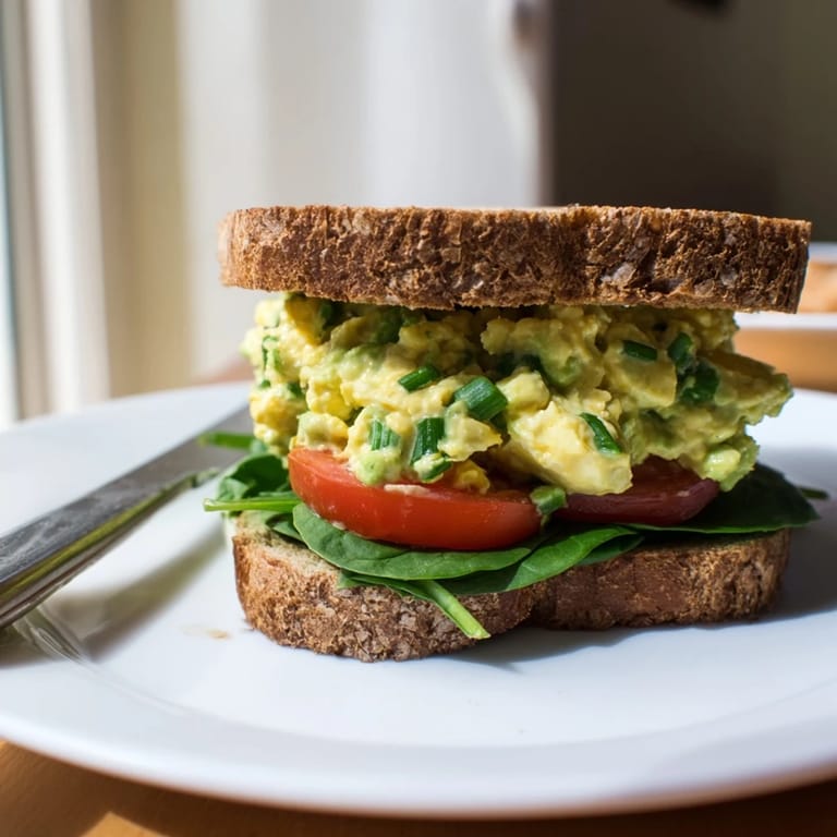Save I was standing at my kitchen counter on a Saturday morning, staring at a carton of eggs and a very ripe avocado that needed rescuing, when this sandwich was born. My usual egg salad felt too heavy that day, and I wanted something brighter, fresher. I grabbed the avocado, squeezed in some lemon, and suddenly my go-to lunch transformed into something I actually craved. Now it's my favorite way to use up leftover hard-boiled eggs without feeling weighed down.