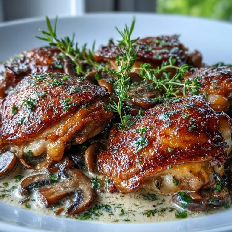 Save There was a bottle of rosé left over from a summer picnic, sitting in the fridge door for weeks. I'd been staring at it every morning, wondering what to do with wine that felt too delicate for anything serious. Then I remembered coq au vin, but lighter, softer, something that wouldn't weigh us down on a warm evening. The kitchen smelled like thyme and butter within minutes, and that pale pink sauce turned glossy and rich in a way I didn't expect.