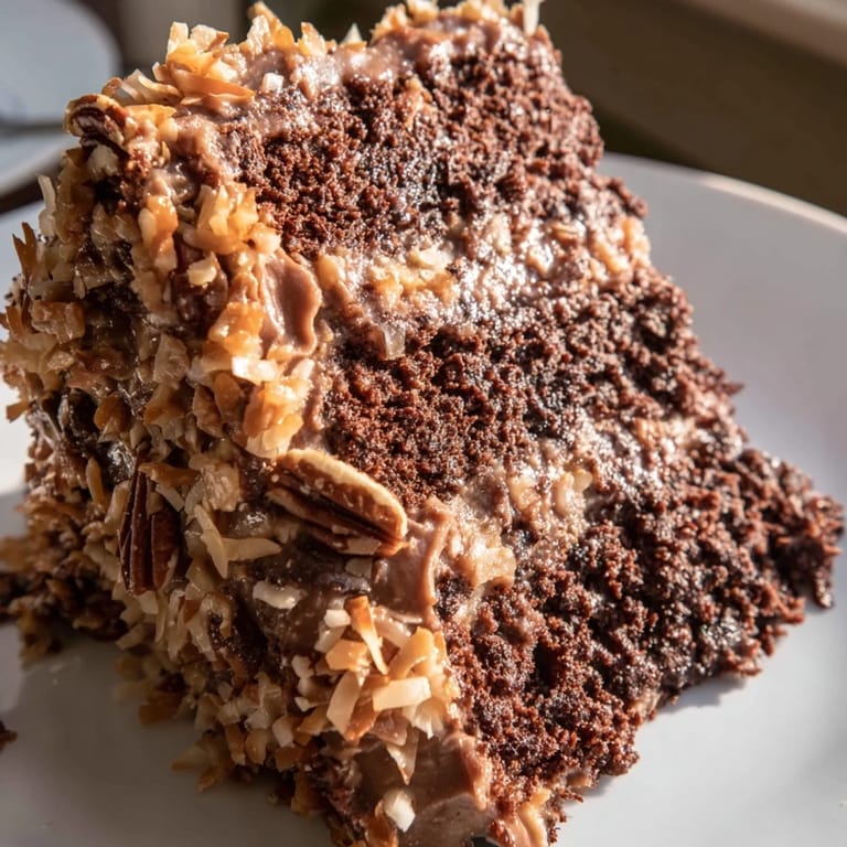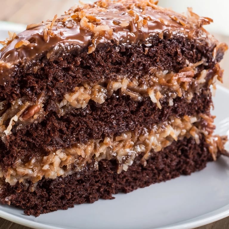 I baked this for my partner's work celebration once, and watching their boss take a second slice while everyone else was still on their first told me everything I needed to know. The kitchen had filled with this warm, almost coffee-like chocolate aroma that seemed to make people slow down and linger. That's when I realized German chocolate cake isn't just dessert—it's an excuse to gather around something that tastes like care.