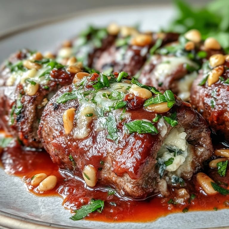 Save My neighbor Rosa showed up one Sunday afternoon with a pot so heavy she had to set it down twice on the stoop. Inside were these tightly rolled beef bundles swimming in sauce so fragrant I forgot we'd already eaten lunch. She called them braciole, and when I unrolled one with my fork, the filling spilled out like a secret: sweet raisins, toasted pine nuts, sharp cheese, all tangled with herbs. I made them the following week, and they've been on rotation ever since.
