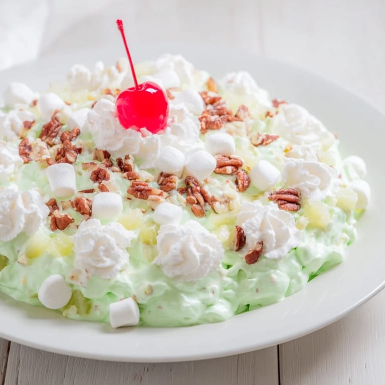 Save My mom pulled this electric green bowl out of the fridge during a July Fourth cookout, and I watched my dad's eyes light up like he'd discovered treasure. Watergate Salad was his thing—the kind of dish that exists in that blurry zone between dessert and side dish, and somehow that confusion is exactly why it works. I didn't understand the appeal until I tasted it: the way the pistachio pudding clung to every pineapple chunk, how the marshmallows softened into pillowy clouds, and how that whipped topping made everything feel impossibly light. Now I make it whenever I need to feel like a kid again, or when someone needs convincing that potluck food can be genuinely exciting.